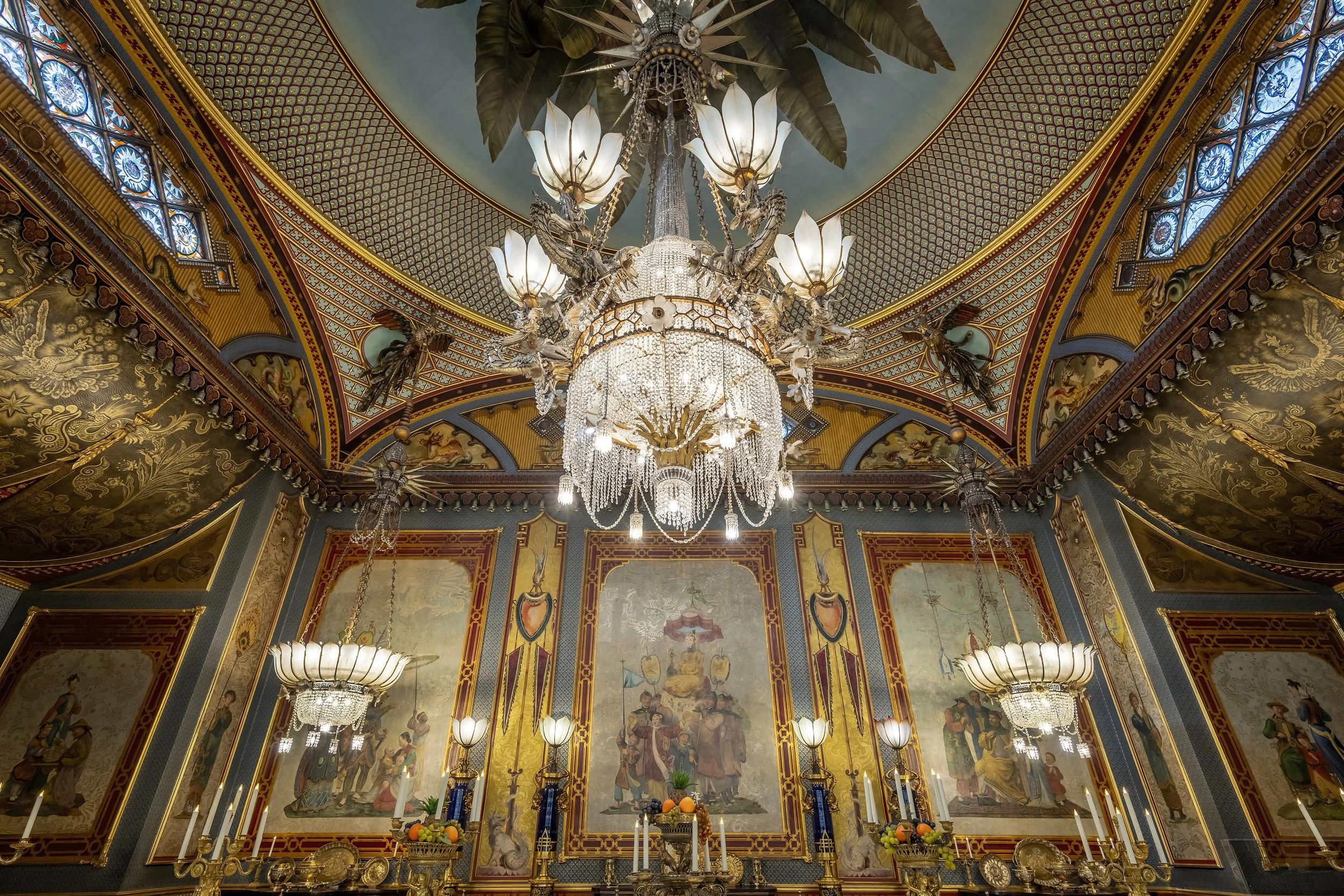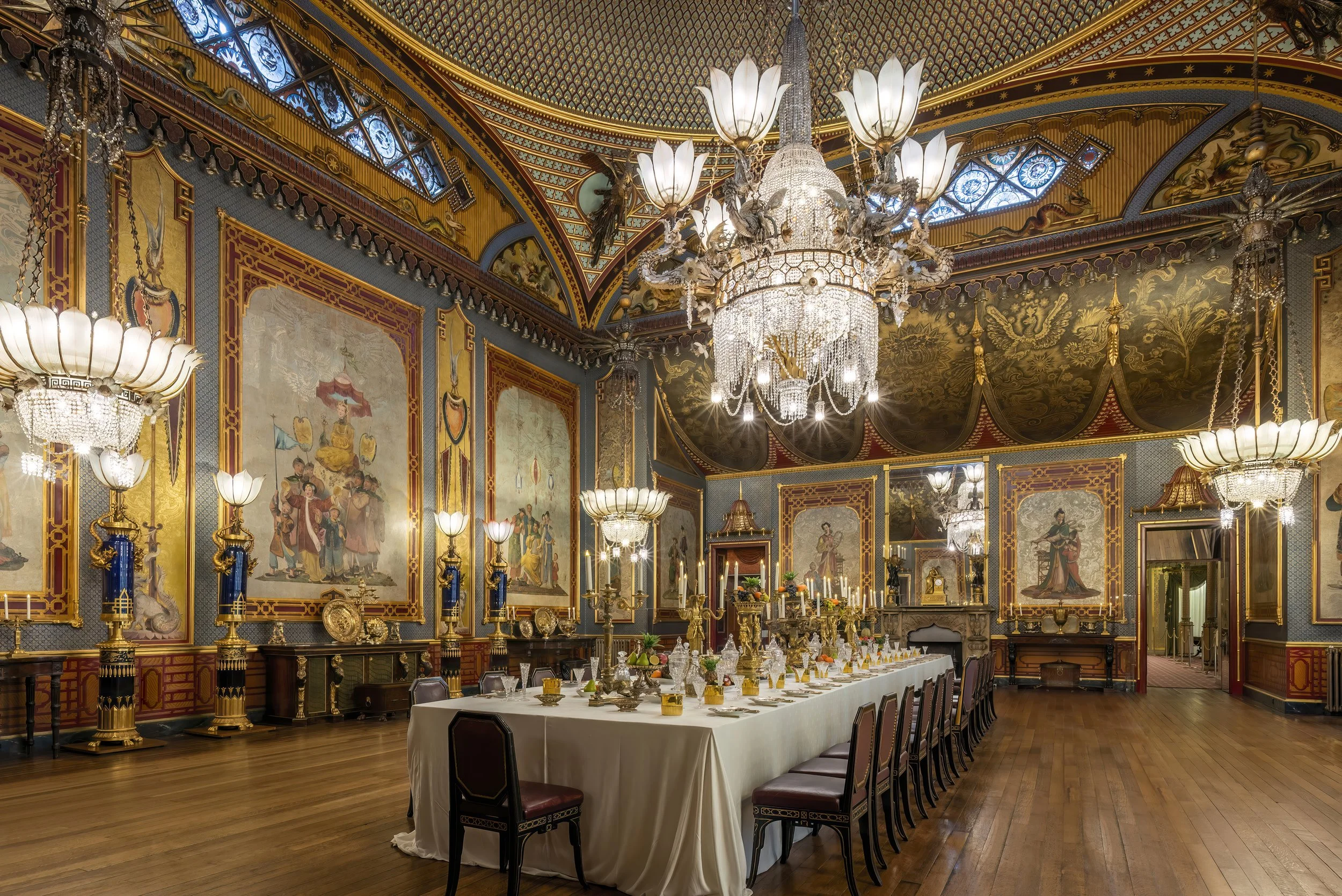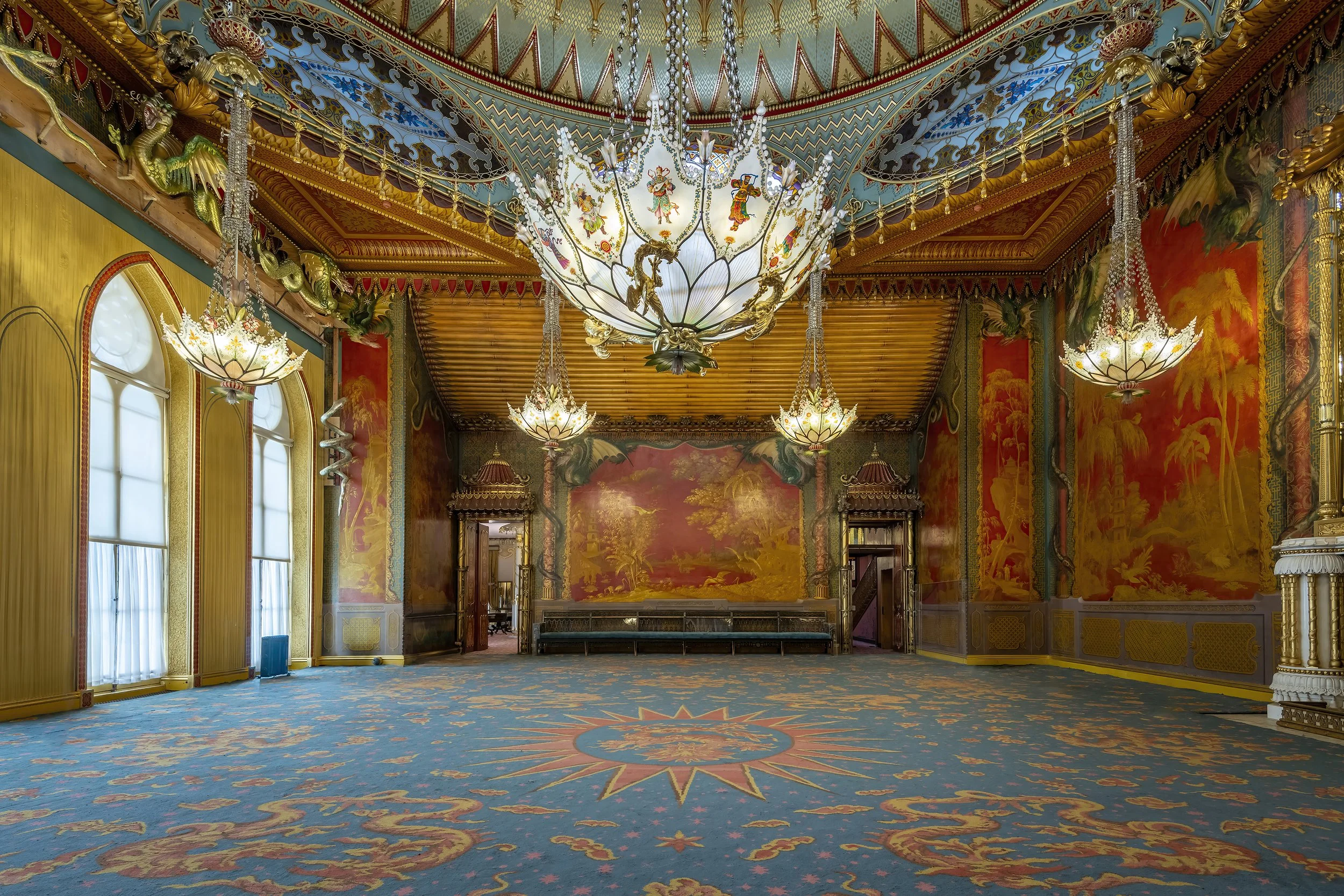 From a photographer’s perspective, the Pavilion was one of the properties high up my list to capture. Externally, the building changes character throughout the day as the sunlight shifts, with dramatic silhouettes and softer, pastel-toned walls. Inside, rooms such as the Banqueting Room and Music Room are a feast of colour, texture and symmetry. I was careful to capture the buildings atmosphere while documenting the interior’s historic fabric. Every surface tells a story, from the hand-painted wallpapers to the elaborate chandeliers and chinoiserie motifs.